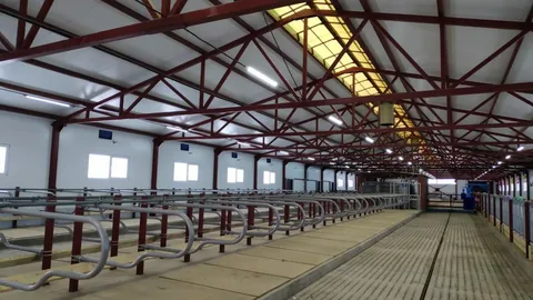 Новая ферма представляет собой каркасное сооружение для животноводства, которое разделено на четыре секции, предназначенные для обеспечения комфортных условий беспривязного содержания дойных коров. Это позволяет животным свободно перемещаться в соответствии с естественным поведением.