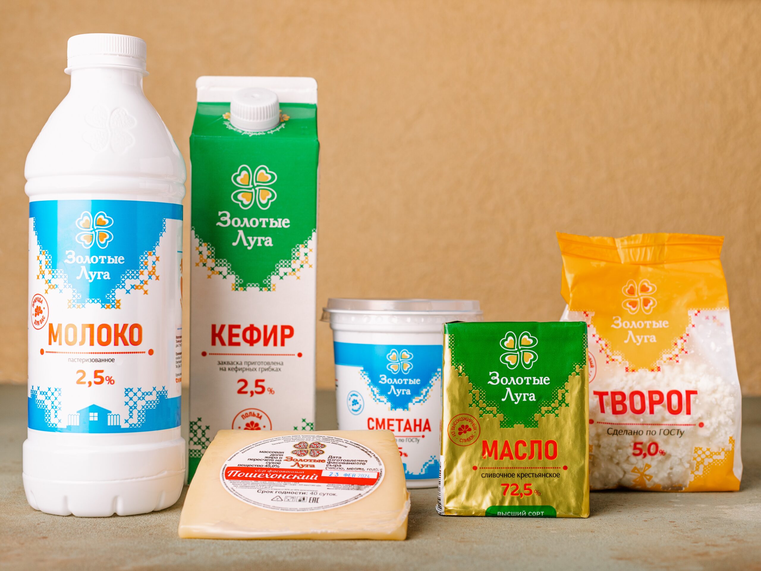 На витрине представлены сливочное масло, творог, кефир, сметана, молоко и йогурты торговой марки «Золотые луга», а также питьевой йогурт из десертной коллекции со вкусом «Черничный пирог». Продукцию можно заказать с доставкой через маркетплейс.